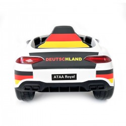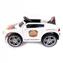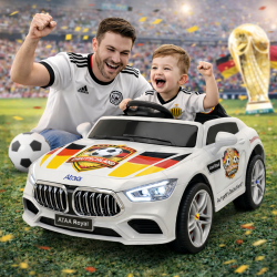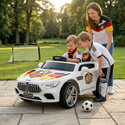 La macchinina per bambini Edizione Limitata Germania è un’auto elettrica per bambini personalizzata con adesivi esclusivi ispirati alla nazionale tedesca di calcio. Un modello potente, elegante e ricco di dettagli che combina il design dell’auto elettrica bambini 12V con una decorazione tematica speciale dedicata ai Mondiali di calcio.