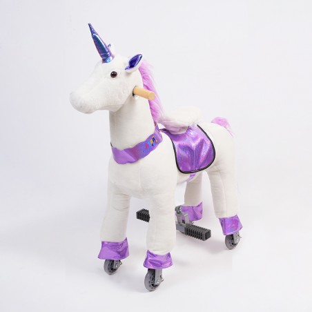 Questo cavallo meccanico con ruote Ponyride non solo offre divertimento, ma stimola anche l'immaginazione con il suo accattivante design a forma di unicorno.